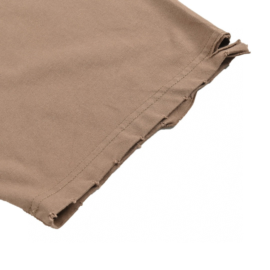 This Balenciaga t-shirt features a muted taupe design with intentional distressed details, providing a trendy, worn-in look. The bold Balenciaga logo is prominently displayed across the chest in a matching hue for a cohesive style. Made from high-quality materials, this t-shirt ensures both comfort and durability. Perfect for casual wear, it adds a stylish, edgy touch to any wardrobe.