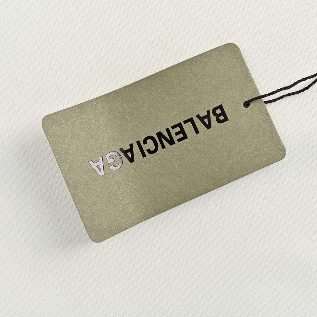 This Balenciaga t-shirt features a minimalist design with a graffiti-style "Balenciaga" logo on the chest. The shirt is primarily white, offering a relaxed fit with short sleeves and a high neck. Perfect for adding a subtle yet edgy touch to your casual wardrobe.