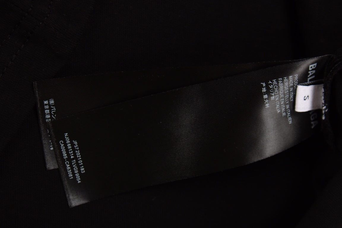 Black long sleeve t-shirt with brown Balenciaga logo on the chest. Simple and minimalist design. Comfortable fit, perfect for everyday wear