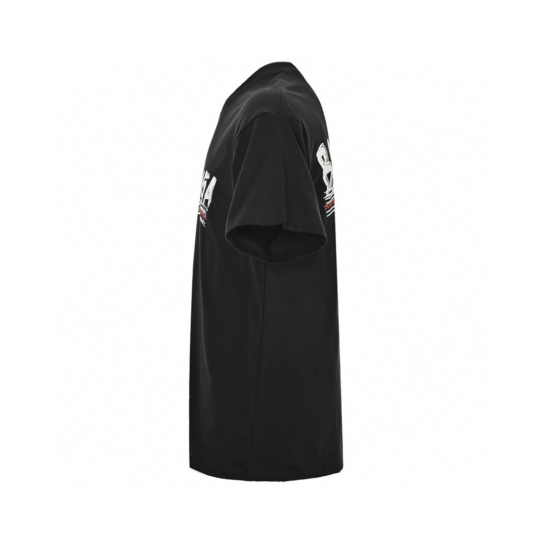 This Balenciaga Paris Logo T-Shirt features a striking design with a bold Balenciaga Paris logo on the front. The black color adds a sleek and versatile look, suitable for various outfits. Made from high-quality fabric, it provides a comfortable fit and durability for everyday wear.