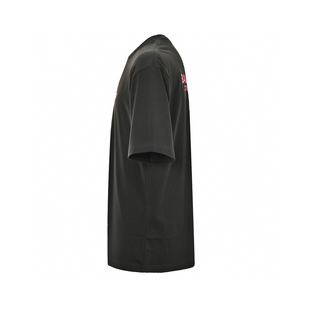 This Balenciaga t-shirt features a minimalist black design. The front is adorned with the Balenciaga logo in bright pink, accompanied by "Couture Paris 8" text. The clean lines and simple aesthetic make it perfect for a modern, casual look. Ideal for adding a touch of contemporary style to everyday outfits.