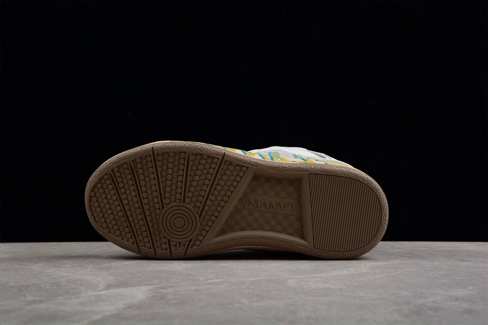 - **Sole:** The gum rubber sole offers excellent traction and durability. It is adorned with blue and green geometric patterns, adding an artistic flair to the shoe’s design.