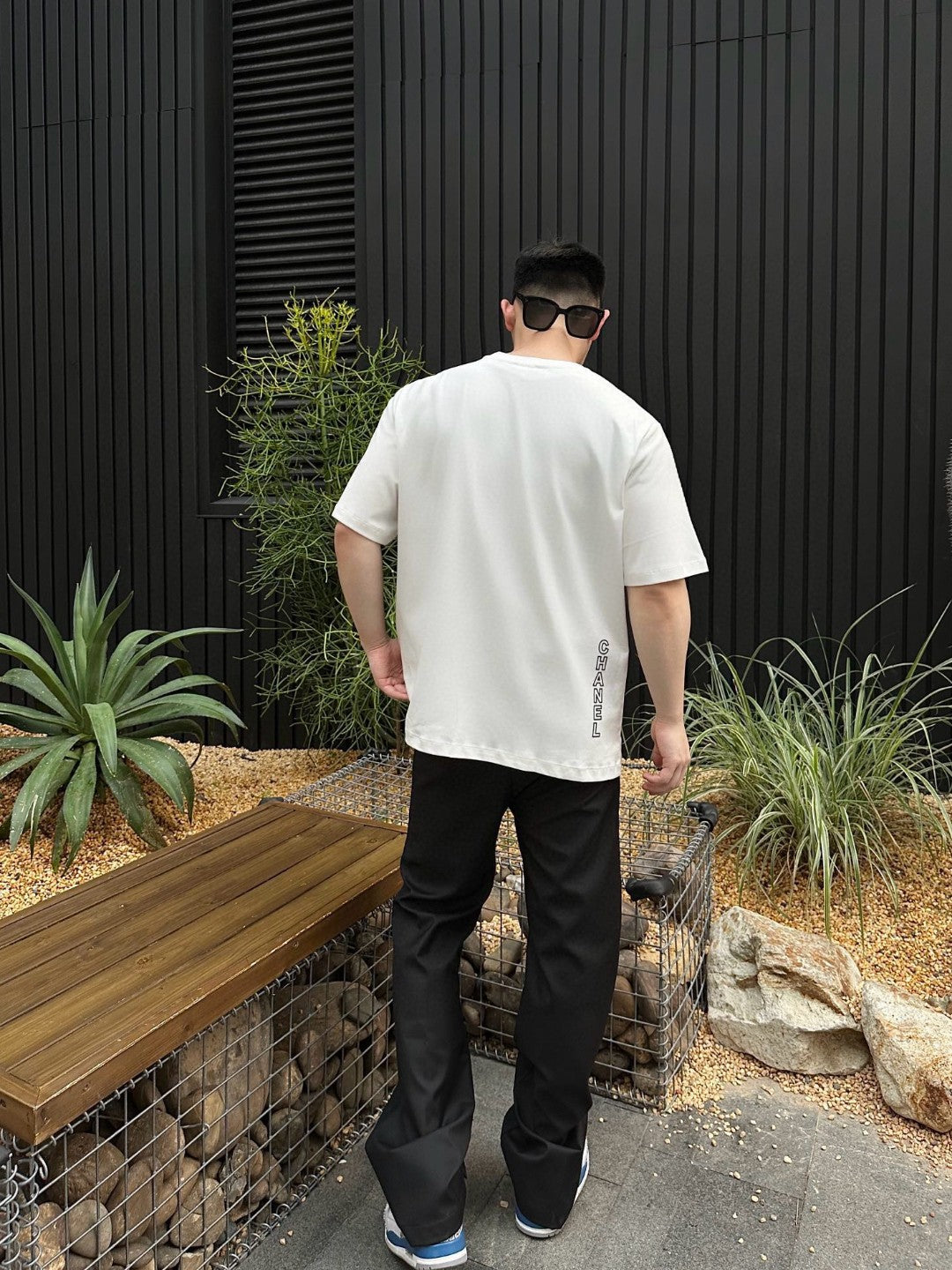 This white Chanel T-shirt features a minimalist design with the Chanel logo in a delicate, handwritten style on the left chest. The simplicity and elegance of this T-shirt make it a versatile piece that can be dressed up or down. Made from high-quality fabric, it ensures both comfort and style, suitable for various occasions.