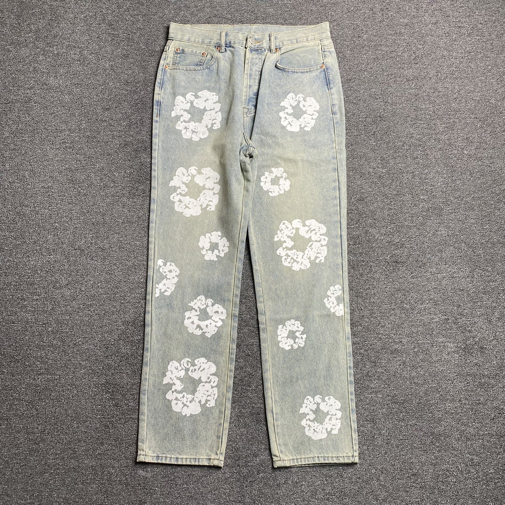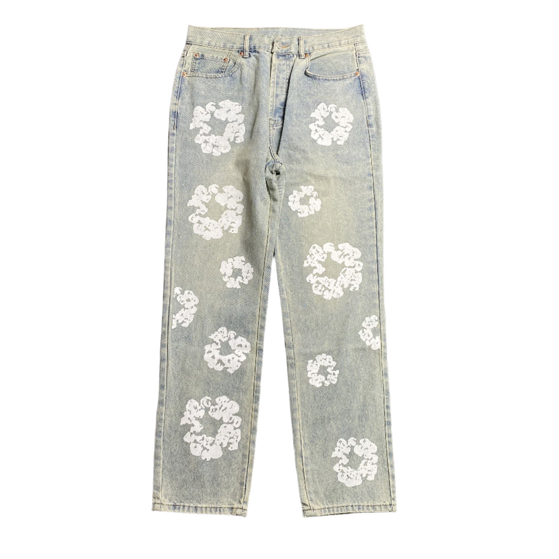 The Denim Tears x Levi's Dirty Wash Wreath Jeans Light Wash Replica bring together iconic design and cultural storytelling in a bold, stylish package. Inspired by the originals, these jeans feature the signature cotton wreath motif, a powerful symbol of heritage and history, beautifully contrasted against a sleek black denim base. Crafted with a premium denim blend, they offer a relaxed yet flattering fit, combining durability with comfort. Perfect for making a statement, these jeans embody the essence of modern streetwear and artistic expression at an accessible price. Redefine your style with a piece that speaks to culture and individuality.