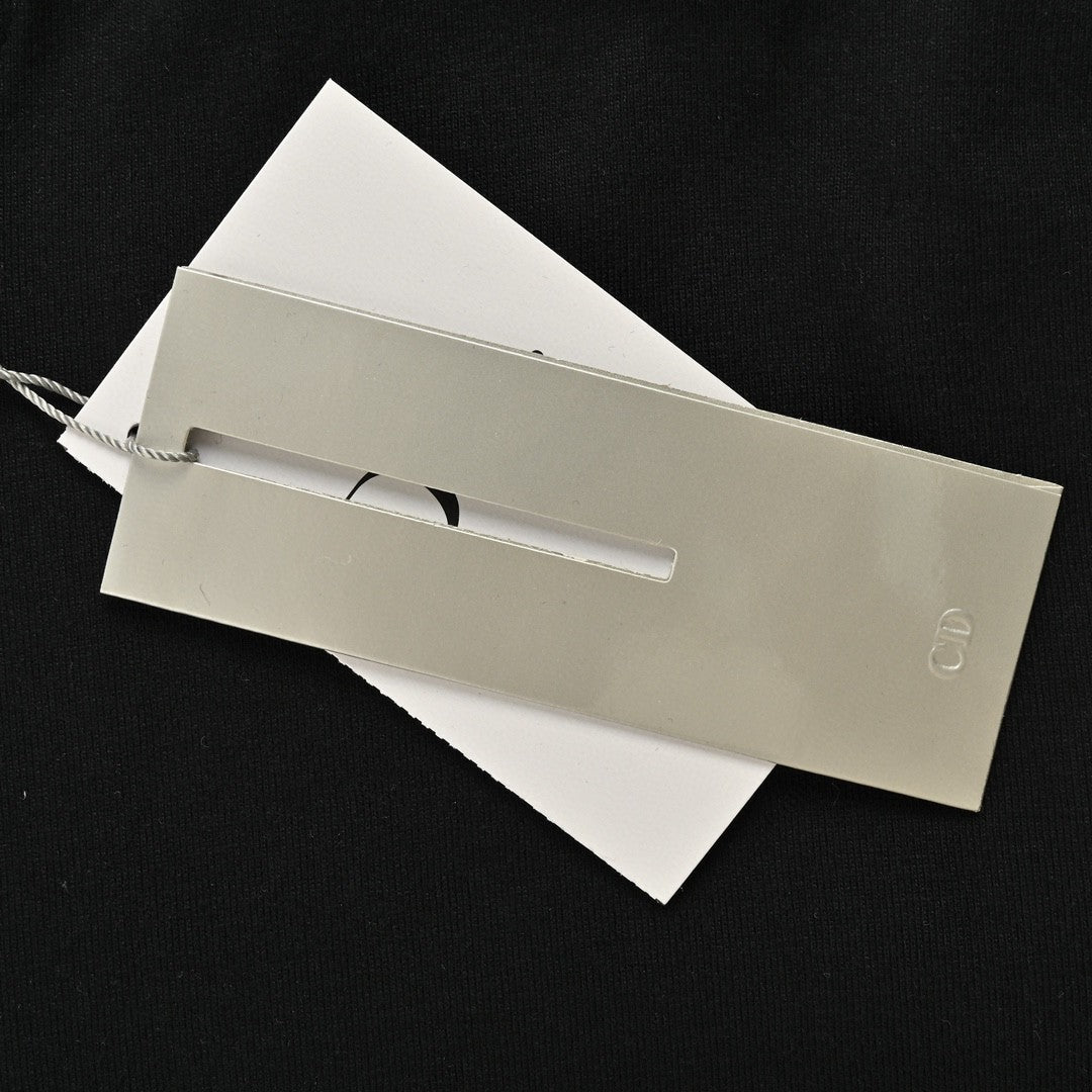 This Dior t-shirt features the signature of Christian Dior along with the year 1947, printed in a handwritten style on the front. The sleek black background highlights the elegant and historical design, making it a timeless addition to any wardrobe.