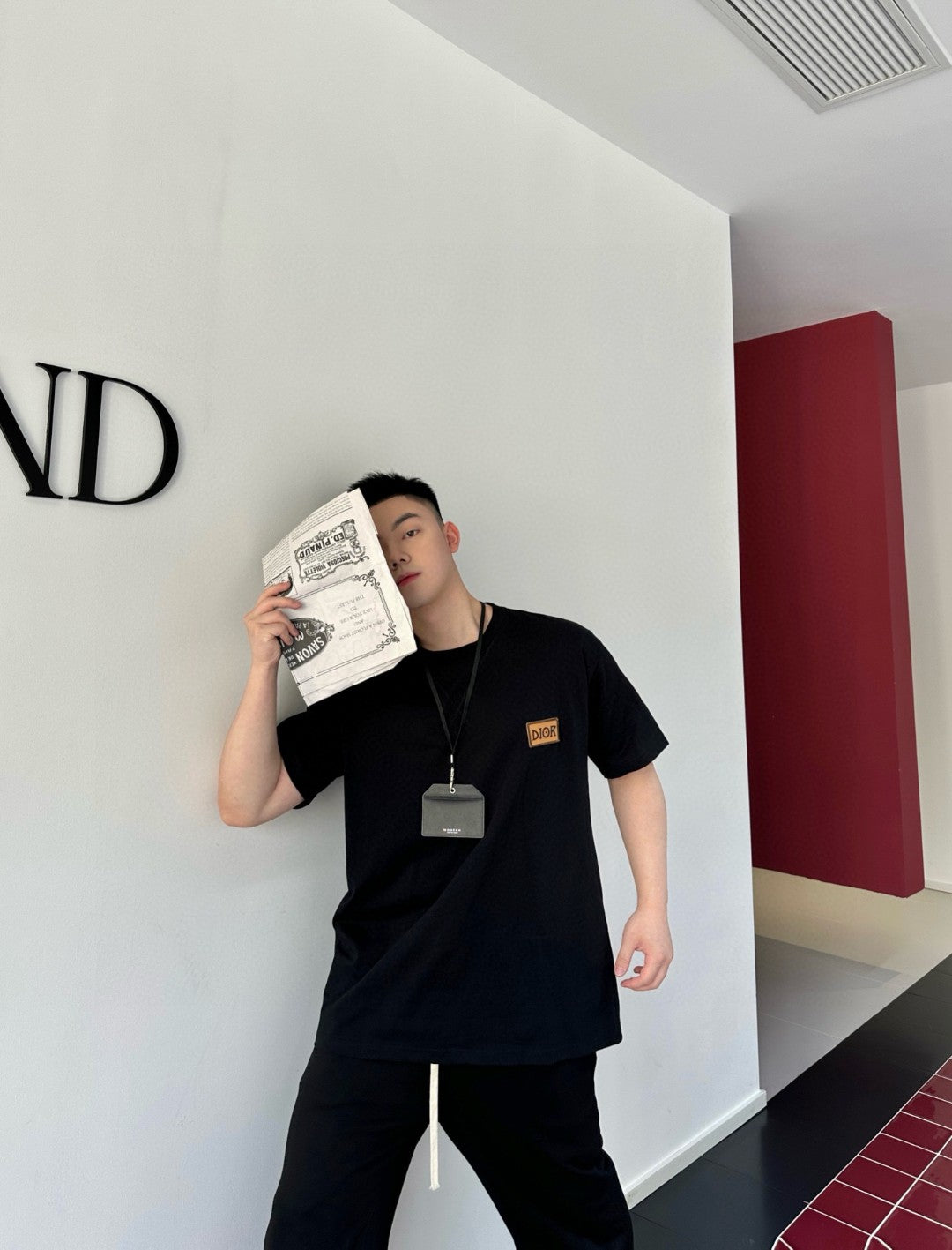 This Dior t-shirt features a minimalist design with high-quality black cotton fabric. The small Dior patch on the chest adds a touch of elegance and sophistication. Perfect for a refined and stylish look, this t-shirt effortlessly combines luxury and simplicity, making it a versatile piece for any wardrobe.