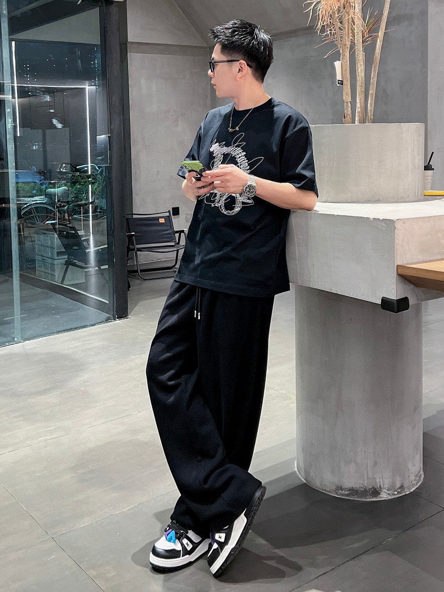 This Dior t-shirt features an abstract scribble design in white on a black background. Made from high-quality cotton, it offers a unique artistic touch to any casual outfit. Perfect for those who appreciate minimalist yet eye-catching designs.