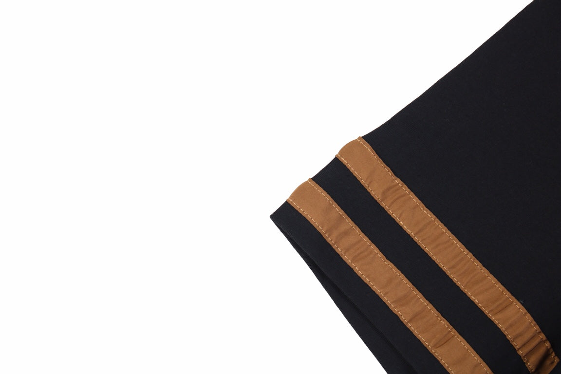 This Dior t-shirt features the brand's name in a bold script logo across the chest in white. The t-shirt is black, providing a sleek backdrop for the logo. Additional design elements include double brown stripes on the sleeves. Made from high-quality materials, it offers both comfort and style. Perfect for a chic and casual outfit.