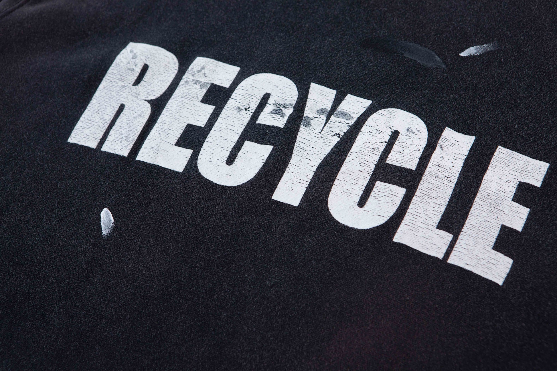 The standout feature of this hoodie is the bold "RECYCLE" graphic emblazoned across the chest in large, eye-catching letters. This not only adds a trendy element but also promotes an important message about sustainability and environmental consciousness, aligning with contemporary social values.