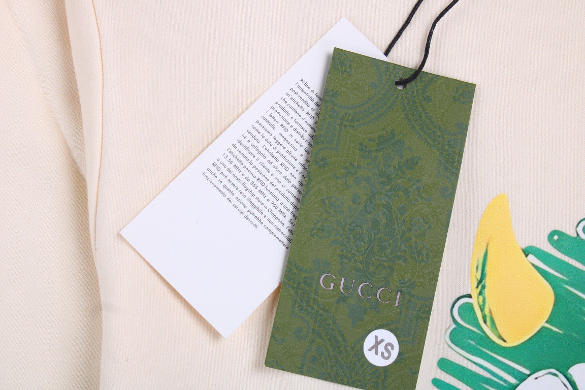 This Gucci sweatshirt in cream features a playful monster graphic with vibrant colors and the Gucci logo. The unique design adds a fun and stylish touch to your casual wear. Made from premium materials, this sweatshirt offers both comfort and durability.