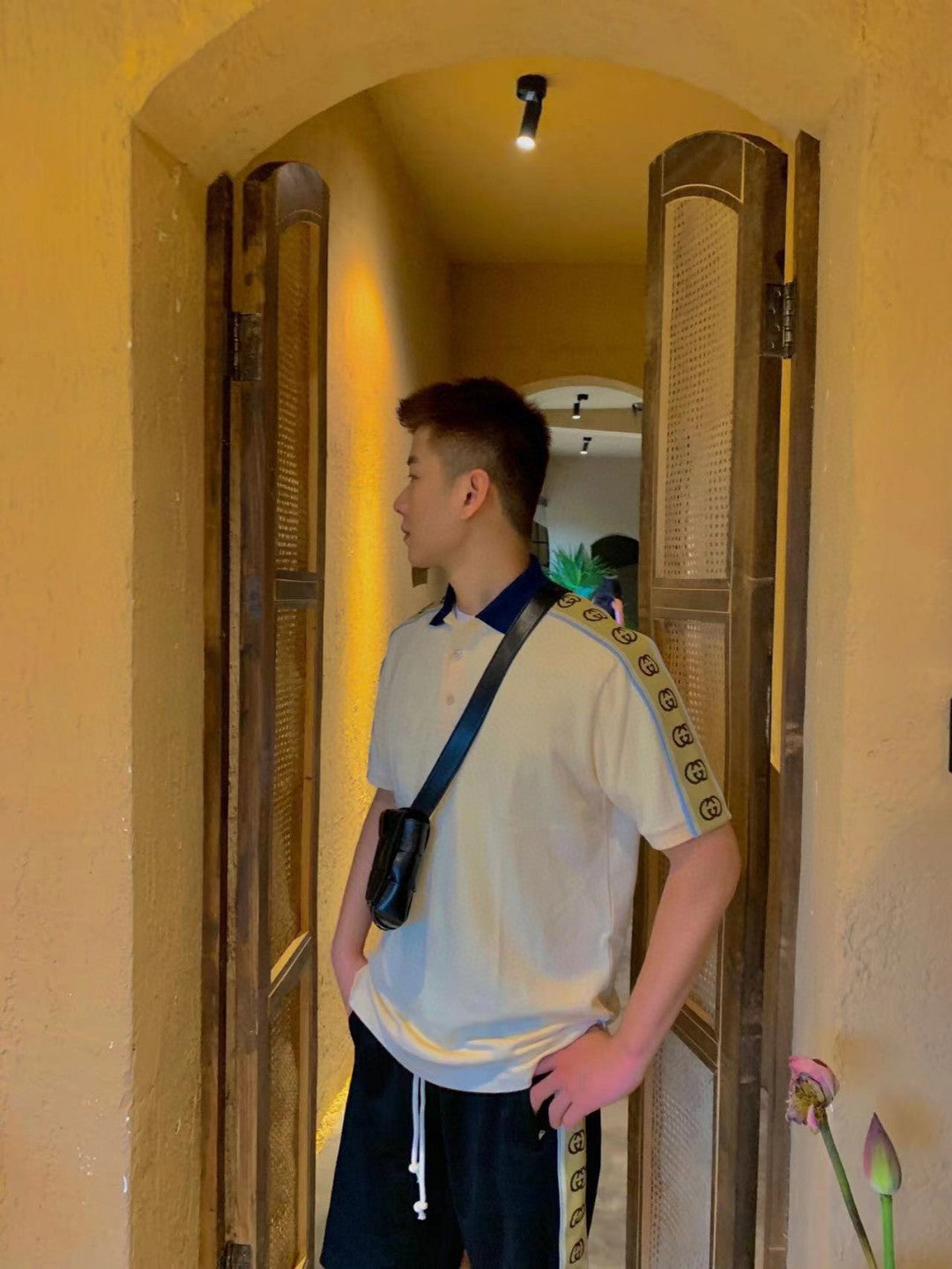 This Gucci Polo Shirt in a creamy white color features signature logo tape detailing along the shoulders and sleeves. The shirt is crafted from high-quality, comfortable fabric and includes a navy collar and a three-button placket for a classic polo look. The iconic Gucci logo tape adds a touch of luxury and distinctive style, making it a perfect addition to any fashion-forward wardrobe. Ideal for casual wear with a touch of sophistication.