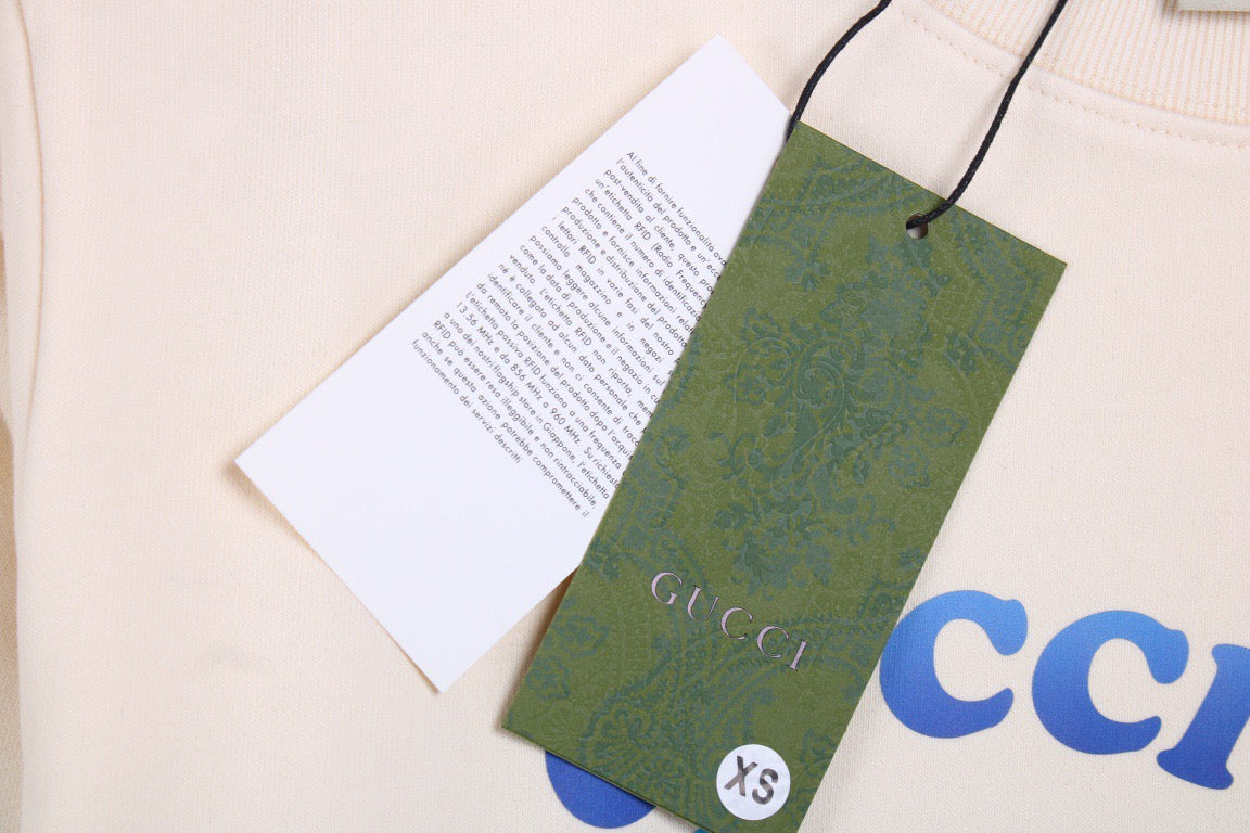 This Gucci sweatshirt in cream features a colorful and playful graphic of Stitch enjoying donuts and candy, along with the Gucci logo. The fun design brings a whimsical touch to your wardrobe. Made from high-quality materials, this sweatshirt offers both comfort and style.