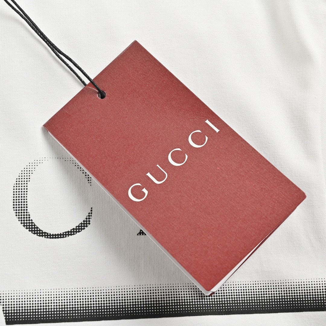 The Gucci White T-Shirt with Firenze 1921 Logo epitomizes luxury and classic style. Made from premium cotton, this t-shirt ensures maximum comfort and breathability, perfect for everyday wear. The front is adorned with the iconic Gucci logo and double G emblem, enhanced by sleek black stripes and the inscription "Firenze 1921," celebrating the brand's heritage. The crisp white color adds a clean and modern touch, making it a versatile piece that can be easily paired with various outfits, from casual jeans to smart trousers. Elevate your wardrobe with this timeless Gucci t-shirt, showcasing a perfect blend of sophistication and contemporary fashion.