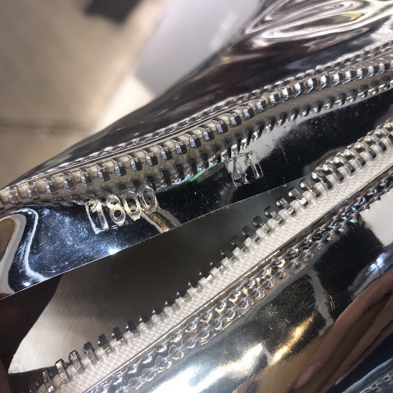 These sneakers feature a glossy metallic leather upper that exudes a futuristic and eye-catching aesthetic. The shiny, reflective surface is complemented by white laces and a white rubber toe cap and sole, creating a dynamic contrast that enhances the overall look. The high-quality leather ensures durability and a luxurious feel, while the high-top design offers additional ankle support.