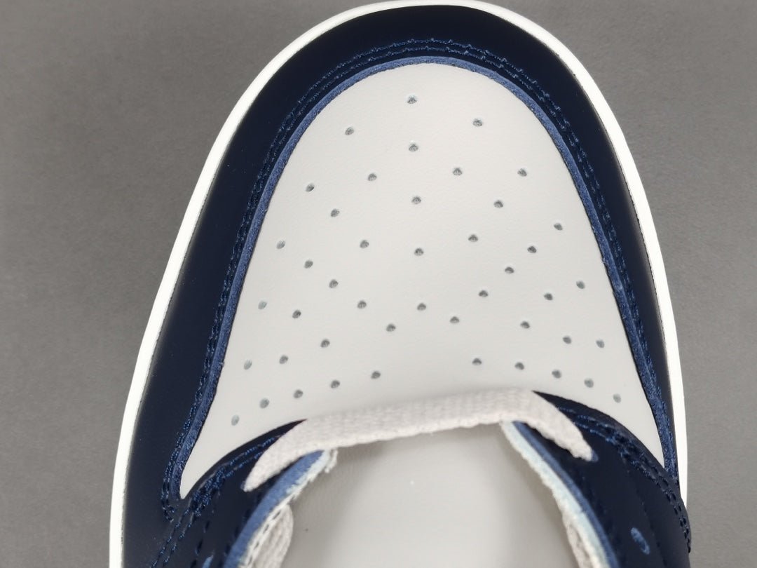 Featuring premium materials such as leather and suede overlays, the JORDAN 1 HIGH 85 x GEORGETOWN exudes quality and durability. The shoe's color palette includes a combination of navy, grey, and white, representing Georgetown's team colors with style and sophistication.