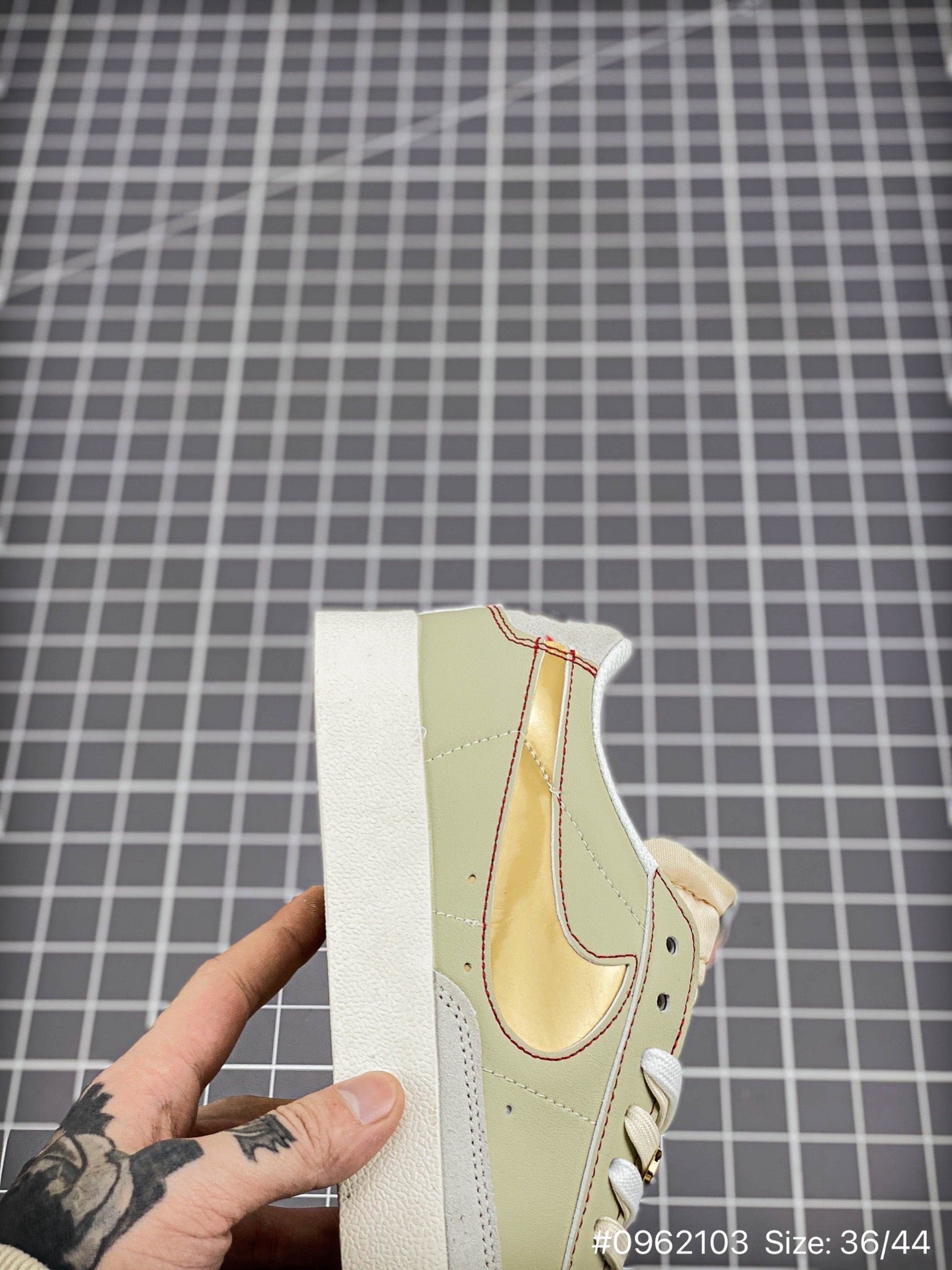 The Nike Blazer Mid '77 Vintage in white and gold redefines a classic silhouette with a touch of elegance and retro charm. The premium white leather upper provides a clean and timeless foundation, while the metallic gold Swoosh and heel tab add a luxurious, eye-catching accent. Subtle suede overlays on the toe enhance durability and texture, while the exposed foam tongue pays homage to the Blazer's vintage heritage. The mid-top design offers a perfect balance of ankle support and versatile styling, making it ideal for everyday wear or adding a refined touch to any outfit. A durable rubber outsole with a herringbone tread ensures excellent traction and long-lasting performance. Whether you're a fan of classic sneakers or looking for a polished upgrade to your wardrobe, the Nike Blazer Mid '77 Vintage in white and gold is a sophisticated choice that blends heritage design with modern flair.