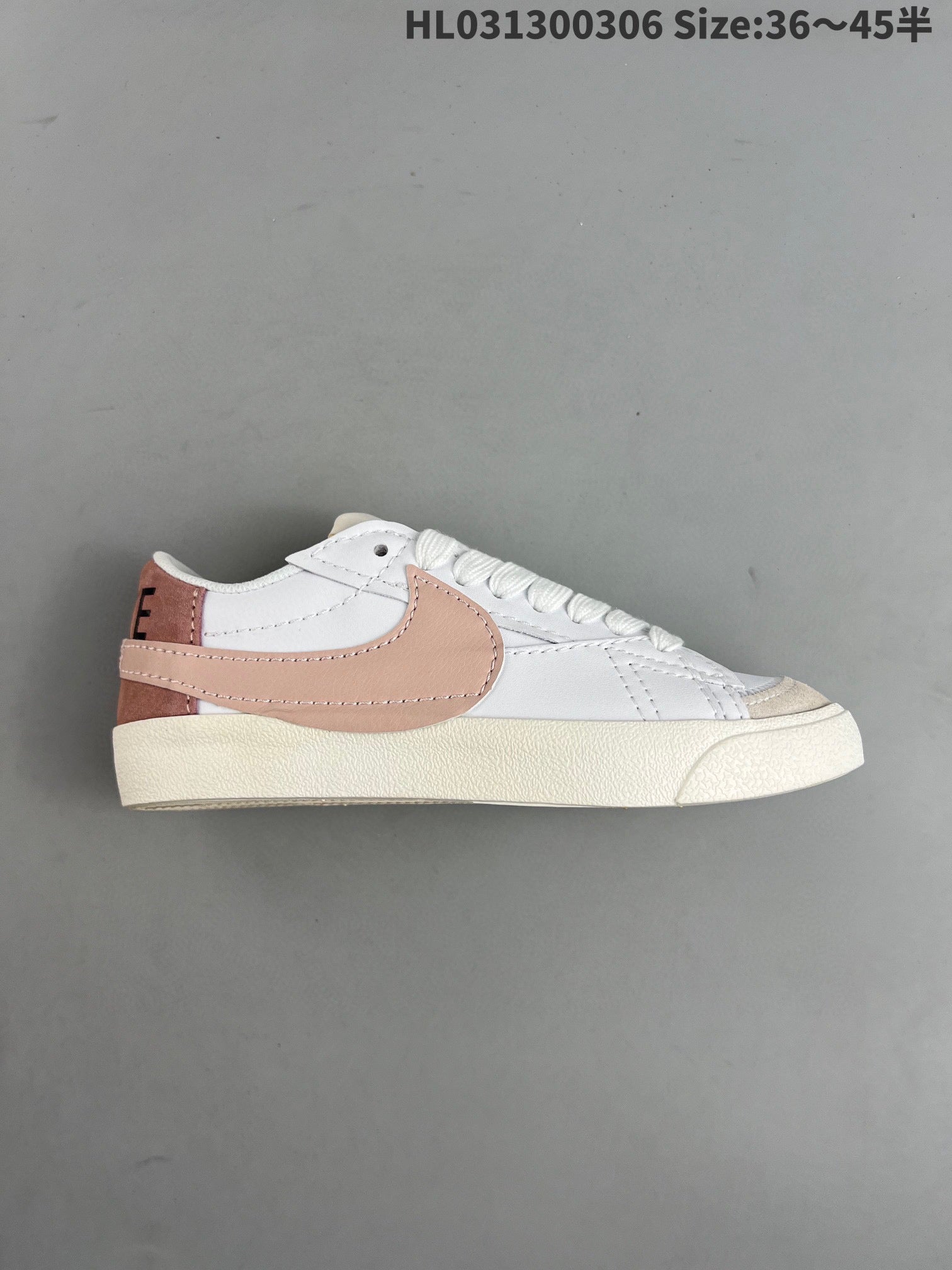 The Nike Blazer Low '1977' in white and mauve pink offers a fresh and stylish update to a classic silhouette. Featuring a crisp white leather upper, this sneaker is elevated with soft mauve pink suede overlays on the toe and sides, adding a sophisticated contrast and depth. The iconic white Nike Swoosh stands out, creating a clean, modern look that pairs effortlessly with the subtle color accents. A vintage-inspired exposed foam tongue nods to the Blazer's retro roots, while the low-top design ensures comfort and versatility for all-day wear. The durable rubber outsole with a herringbone pattern provides excellent grip, making this sneaker perfect for both casual wear and skate sessions. Combining timeless design with a soft, feminine color palette, the white and mauve pink Nike Blazer Low '1977' is a refined and stylish addition to any sneaker collection.