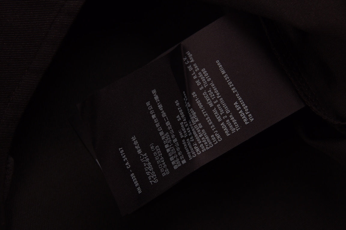 This Prada button-up shirt features a sleek black design, perfect for a sophisticated look. The shirt is highlighted by a chest pocket with the iconic Prada logo patch. It has a classic collar and button-up front, making it versatile for both formal and casual occasions. The minimalist design ensures it can be paired easily with various outfits, making it a stylish addition to any wardrobe.