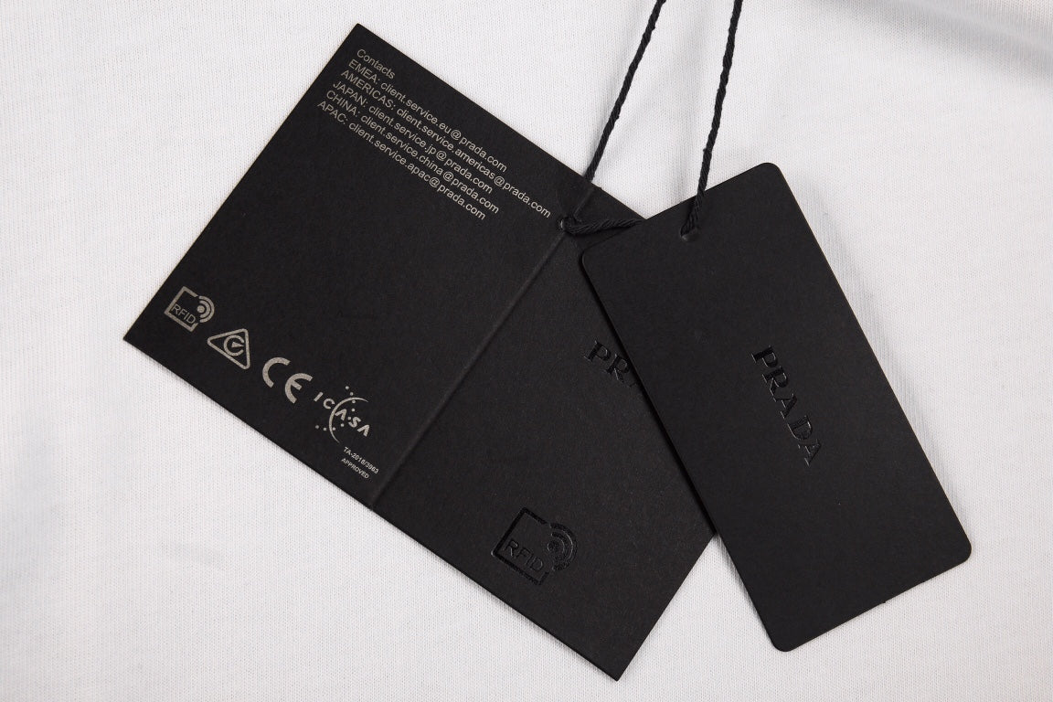 Classic white t-shirt featuring a subtle Prada logo on the chest pocket. Made from high-quality cotton for a comfortable and soft feel. Ideal for everyday wear, offering a minimalist and sophisticated look.