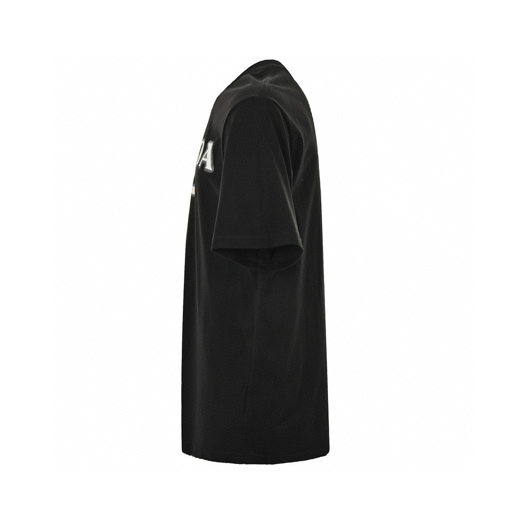 This Prada t-shirt features a classic design with the Prada Milano logo and a white emblem on the chest. Made from high-quality black cotton, it combines comfort with a touch of elegance. Perfect for a refined and stylish look, this t-shirt is a versatile addition to any wardrobe.