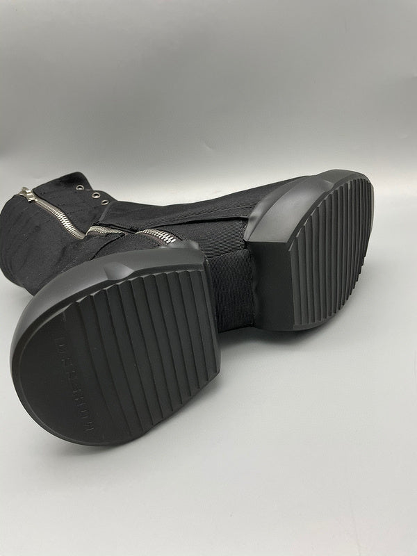 **Rick Owens Black High-Top Canvas Boots: A Fusion of Avant-Garde Design and Functionality**